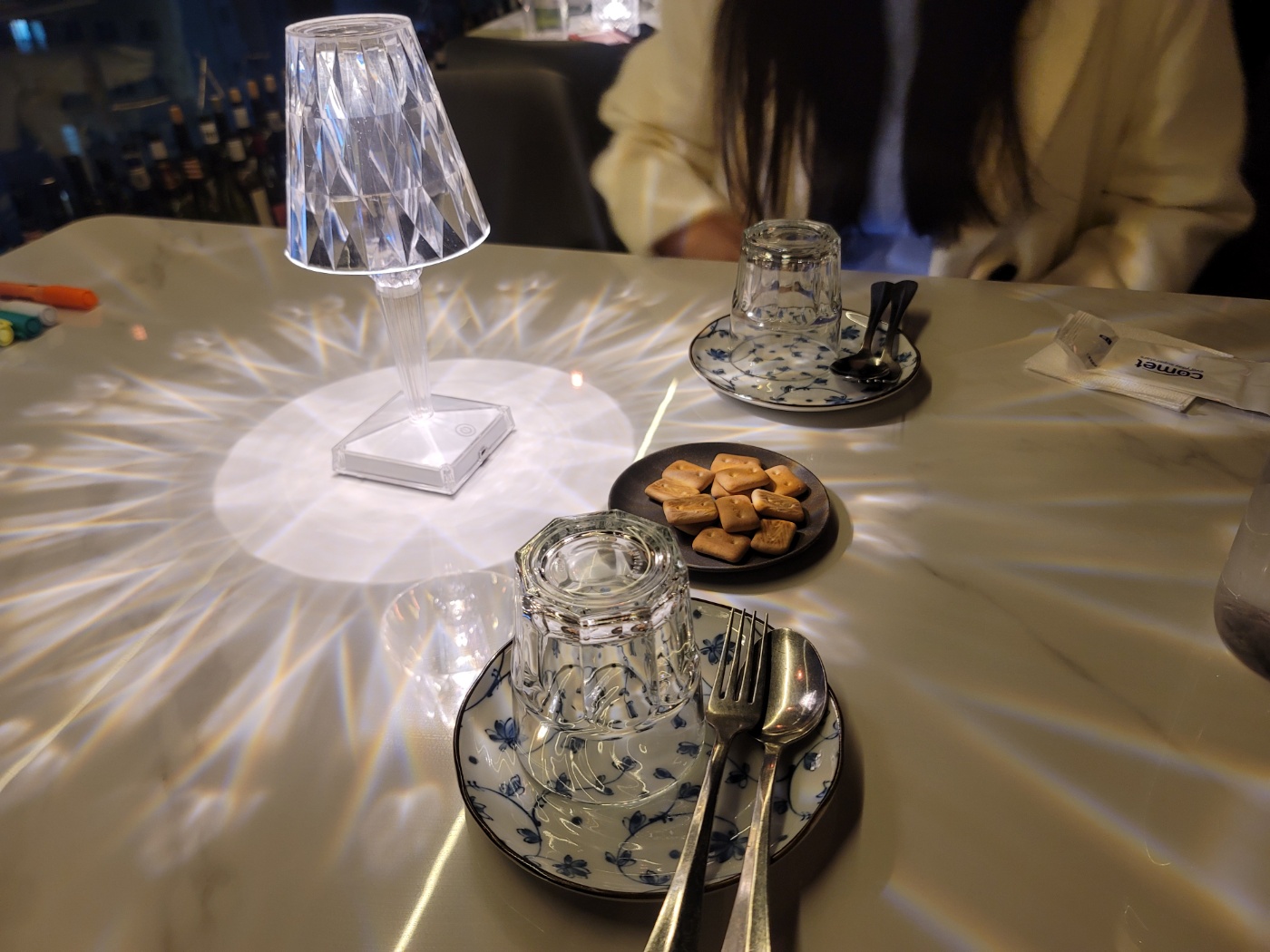 그래서 음식 뭐 나온 것도 아닌데 조명에 비친 테이블 찍기….