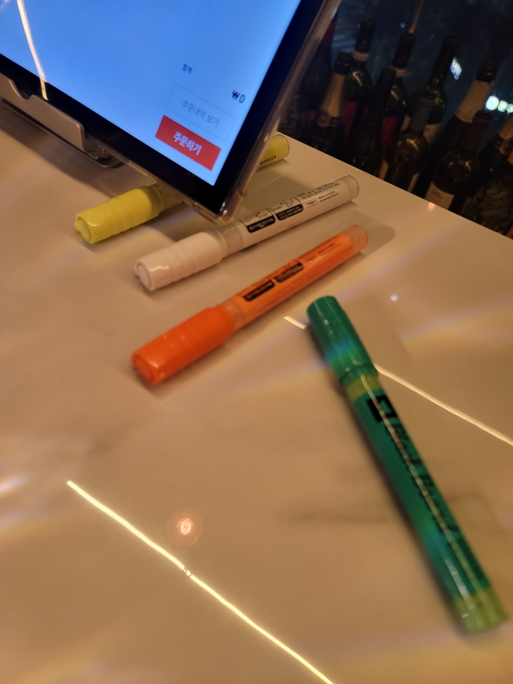 이렇게 테이블에 펜이 놓여져 있어요 ㅋㅋㅋ