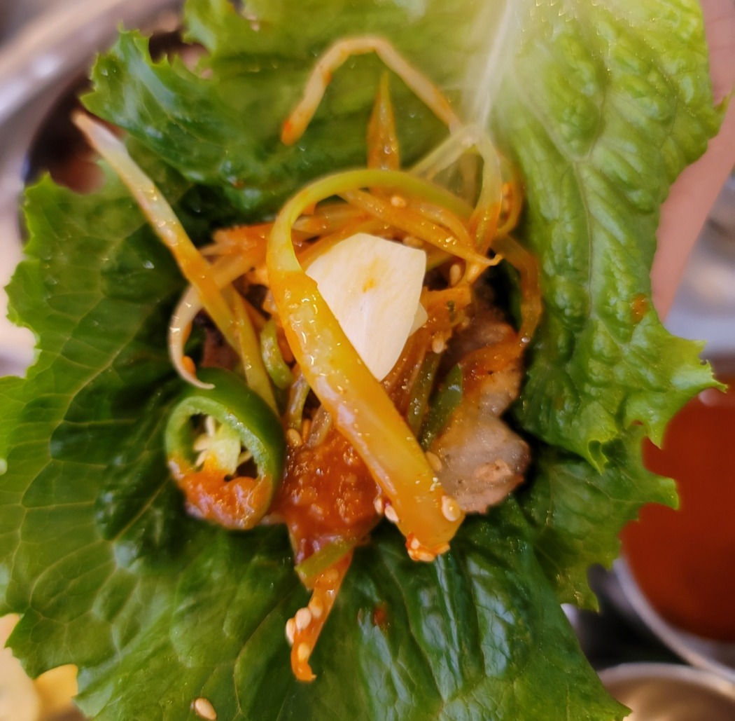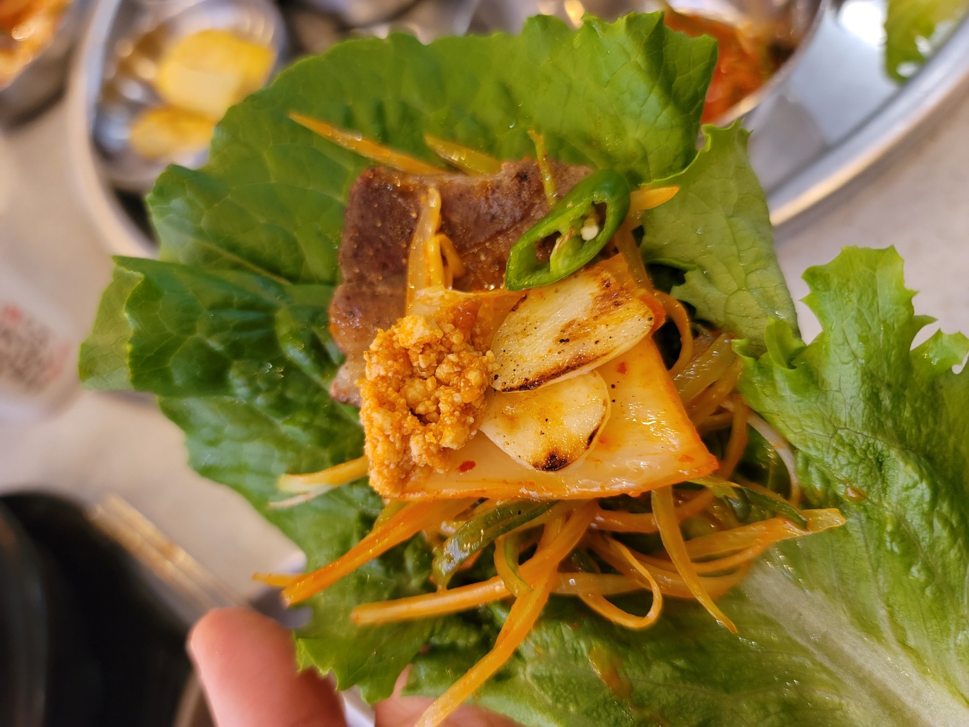 그냥 먹었을 때보단 싸 먹으면 담백하고 고소함을 확실히