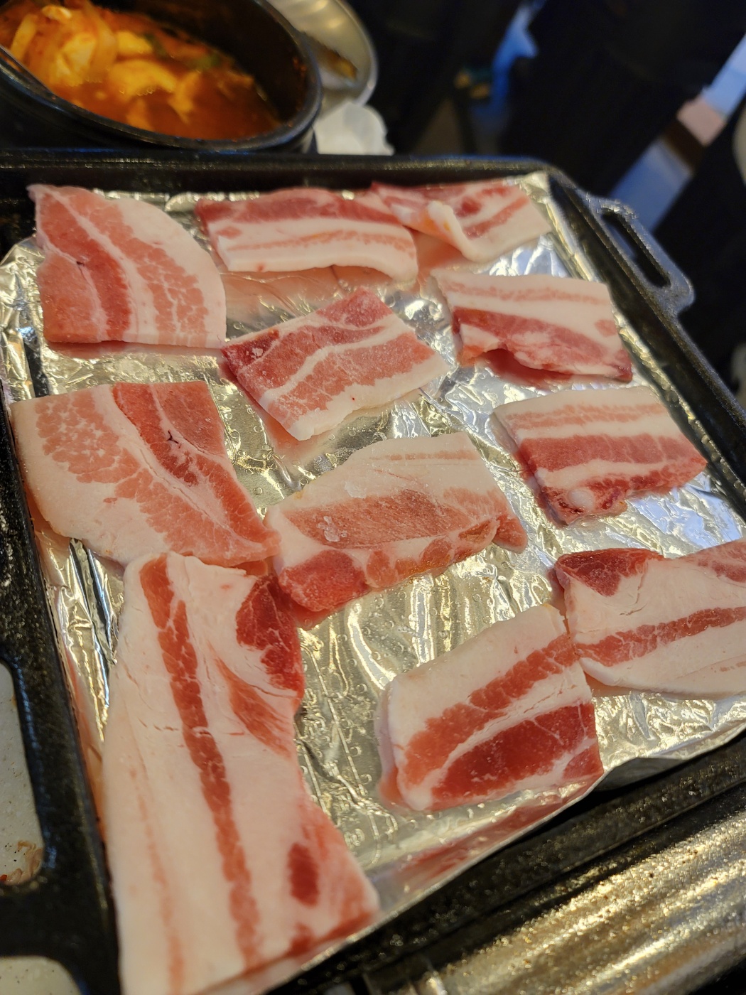 급랭삼겹 2인분이랑 삼장찌개를 시켰습니다.